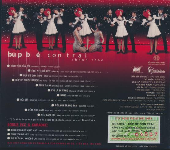 Production credits: Giám Đốc Sản Xuất: Châu Hoàn Dũng; Chủ Nhiệm: Huỳnh Tiết; Biên Tập: Phương Uyên, Thanh Thảo; Dàn Dựng Album: Phương Uyên. Hòa Âm: Bảo Lựu and others. Released in 2007 by Music Box Entertainment in collaboration with Bến Thành Audio-Video. Bonus VCD & Karaoke included with three bonus video/karaoke tracks.