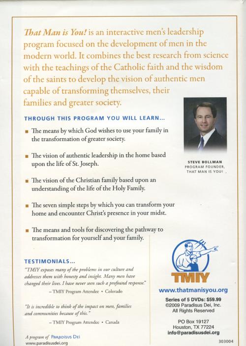 That Man is You! is an interactive men's leadership program focused on the development of men in the modern world. It combines the best research from science with the teachings of the Catholic faith and the wisdom of the saints to develop the vision of authentic men capable of transforming themselves, their families and greater society.