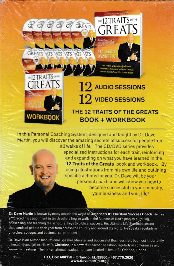 In this Personal Coaching System, designed and taught by Dr. Dave Martin, you will discover the amazing secrets of successful people from all walks of life. The CD/DVD series provides specialized instructions for each trait, reinforcing and expanding on what you have learned in the 12 Traits of the Greats book and workbook. By using illustrations from his own life and outlining specific actions for you, Dr. Dave will be your personal coach and will show you how to become successful in your ministry, your business and your life!,