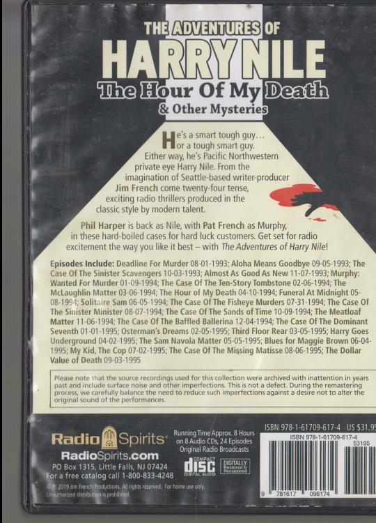 He's a smart, tough private eye in the Pacific Northwest. Harry Nile is the creation of Jim French and these releases collect classic, full-cast radio mysteries featuring hard-boiled cases, moody noir atmosphere, and old-style radio storytelling.