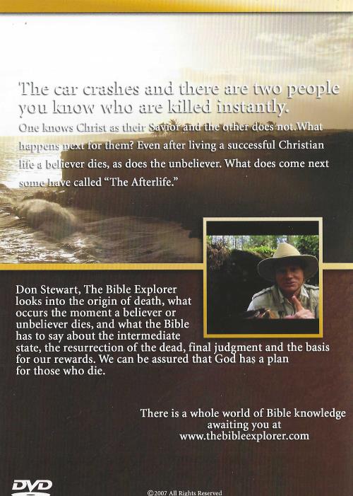 DON STEWART THE BIBLE EXPLORER The car crashes ariaere are p.cople you lciloyki who are killed instantly, One luteveti Christ z their v,to or t em? Even after living a successful Christian iever dies, as does the unbeliever. What does come next e called "The Afterlife." Don Stewart, The Bible Explorer looks into the origin of death, what occurs the moment a believer or unbeliever dies, and what the Bible has to say about the intermediate state, the resurrection of the dead, final judgment and the basis for our rewards. We can be assured that God has a plan for those who die. There is a whole world of Bible knowledge awaiting you