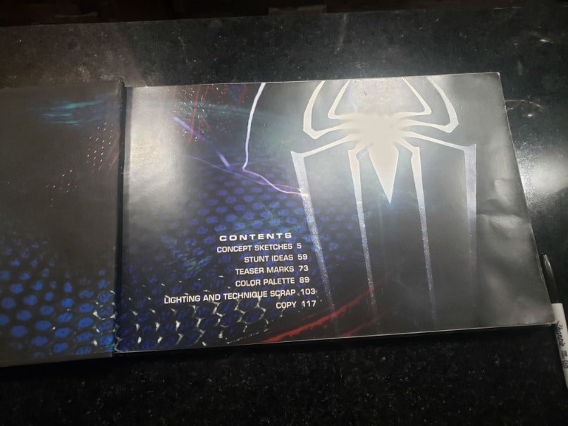 This is a rare The Amazing Spider-Man 2: Art Concept Book that contains concept sketches, stunt ideas, teaser marks, color palette, lighting and technique scrap and copy for the 2014 film. The large hardcover book is 43.5cm x 29cm and contains 122 pages.