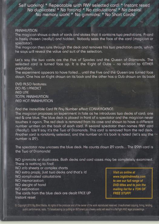 The Annihilation Deck By Cameron Francis w/ Red Card Deck DVD VIDEO MAGIC trick