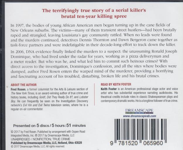 In 2006, DNA evidence finally linked the murders to a suspect: the unassuming Ronald Joseph Dominique, who had lived under the radar for years, working as a pizza deliveryman and a meter reader. But who was he, and what led him to commit such heinous crimes? With direct access to the investigation, Dominique's confession, and all the sites where bodies were dumped, author Fred Rosen enters the warped mind of the murderer, providing a horrifying and fascinating account of his troubled, disturbing, broken life and his brutal crimes.