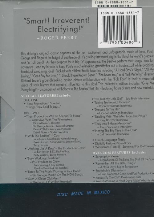 Packed with timeless Beatles classics including "A Hard Day's Night," "All My Loving," "Can't Buy Me Love," "I Should Have Known Better," "She Loves You," and "Tell Me Why," director Richard Lester's groundbreaking film collaboration with the Fab Four remains a cherished cornerstone of rock history, continuing to influence generations of music lovers.