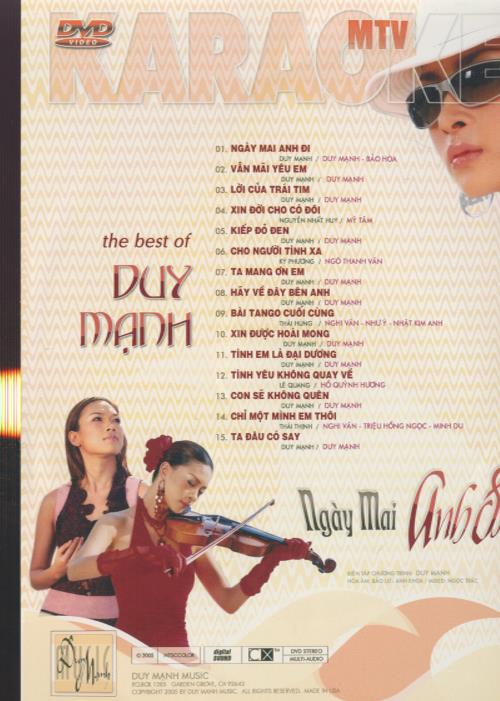 The Best Of Duy Manh: Ngay Mai Anh Di KARAOKE DVD VIDEO MUSIC Vietnamese v-pop!