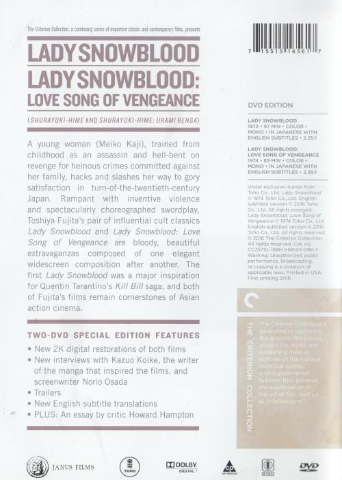 The Complete Lady Snowblood: Lady Snowblood / Lady Snowblood: Love Song Of Vengeance The Criterion Collection 2-Disc Set w/ Poster