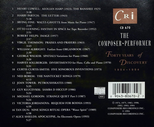 The Composer-Performer: Forty Years Of Discovery 1954-1994 MUSIC AUDIO CD SEALED