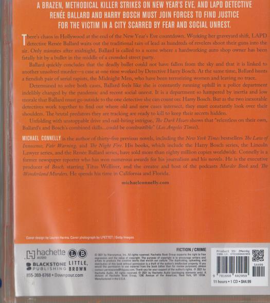 At the same time, the city is terrorized by a pair of serial rapists known as the "Midnight Men", who have been attacking women and leaving no trace. Determined to solve both cases, Ballard feels like she is constantly running uphill in a police department indelibly changed by the pandemic and recent social unrest. She must turn to Harry Bosch for help. As the two inexorable detectives work together to find where old and new cases intersect, they constantly look over their shoulders.