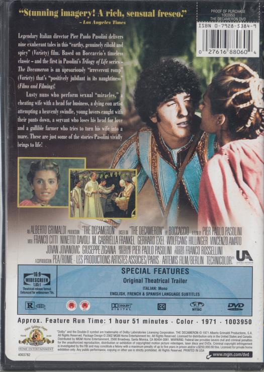 The Decameron DVD VIDEO MOVIE Pasolini Italian classic tale life love NEW SEALED