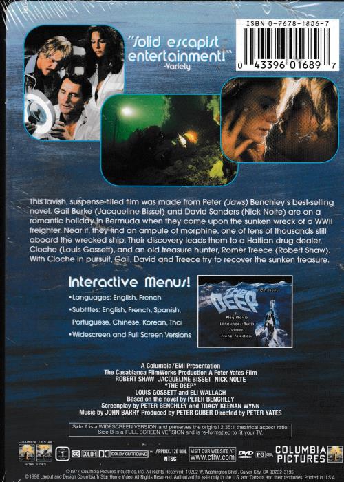 The Deep DVD VIDEO MOVIE sunken treasure suspense action! Nick Nolte 1977 SEALED