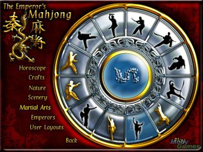 The 72 layouts are grouped into six categories: Horoscope, Crafts, Nature, Scenery, Martial Arts, and Emperors. The game has three tilesets and three difficulty levels to choose from and includes a layout editor to make your own games. When you have played for awhile and have a good record, you are able to submit your record to Hexacto's website to compare with other players.