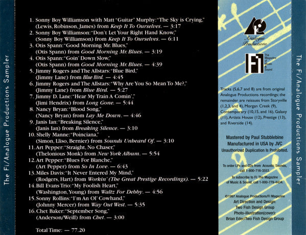 The Fi/Analogue Productions Sampler MUSIC AUDIO CD blues pop jazz Sonny Boy 1997