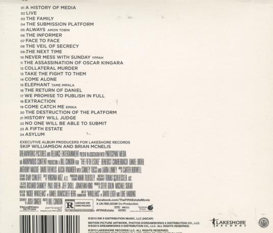 The Fifth Estate: Original Motion Picture Soundtrack MUSIC CD Carter Burwell '13