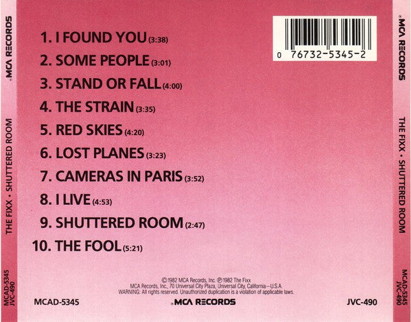 The Fixx: Shuttered Room MUSIC AUDIO CD 80s electronic pop rock 1982 MCA Records