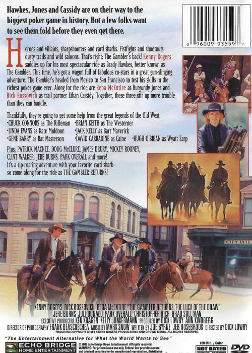 Kenny Rogers saddles up for his most spectacular ride as Brady Hawkes, better known as The Gambler. This time, he's got a wagon full of fabulous co-stars in a great gun-slinging adventure. The Gambler's headed from Mexico to San Francisco to test his skills in the richest poker game ever. Along for the ride are Reba McEntire as Burgundy Jones and Rick Rossovich as trail partner Ethan Cassidy. Together, these three stir up more trouble than they can handle.
