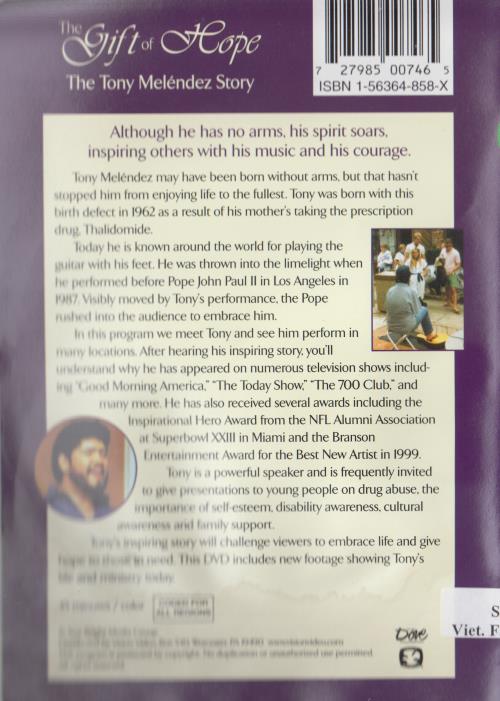 The Gift Of Hope: The Tony Melendez Story DVD VIDEO DOCUMENTARY inspirational