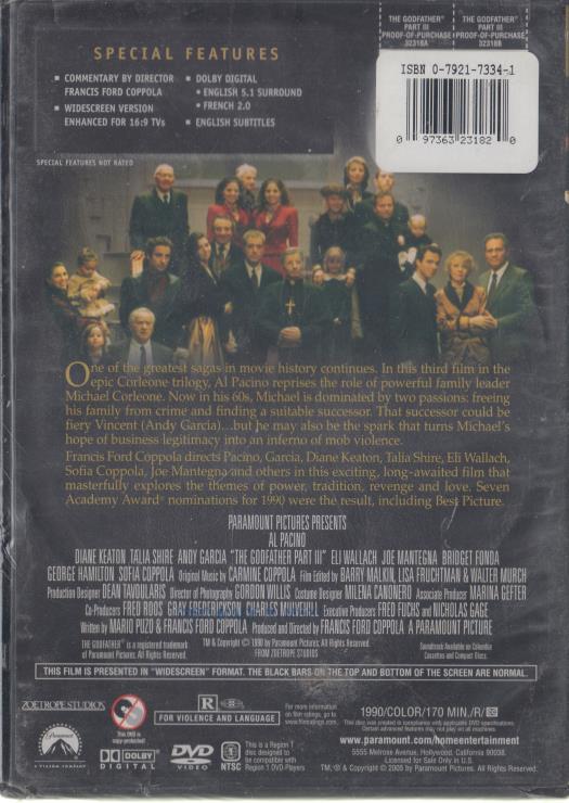 The Godfather Part III DVD VIDEO MOVIE Al Pacino Francis Ford Coppola crime NEW
