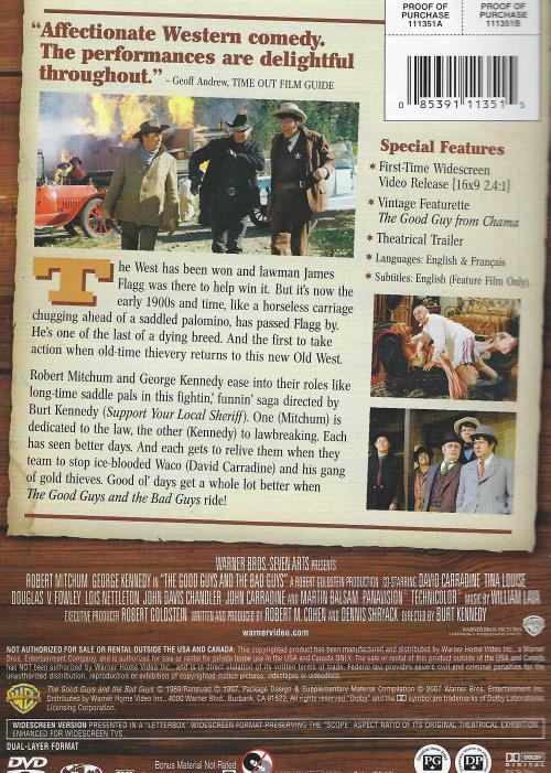 West has been won and lawman James Flagg was there to help win it. But it's now the early 1900s and time, like a horseless carriage chugging ahead of a saddled palomino, has passed Flagg by. He's one of the last of a dying breed. And the first to take action when old-time thievery returns to this new Old West. Robert Mitchum and George Kennedy ease into their roles like long-time saddle pals in this fightin: funnin' saga directed by Burt Kennedy (Support Your Local Sheriff). One (Mitchum) is dedicated to the law, the other (Kennedy) to lawbreaking. Each has seen better days. And each gets to relive them when they team to stop ice-blooded Waco (David Carradine) and his gang of gold thieves. Good ol' days get a whole lot better when The Good Guys and the Bad Guys ride!