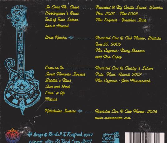 With a broad repertoire of original material ranging from to sweet bluegrass to Allman Brothers-style rocking jams, the Haiku Hillbillys stand out as a unique presence on Maui's music scene.This versatile work showcases the talented group in a live and studio setting, with six tracks recorded at Charley's, two on Mana'o Radio and four in the studio.