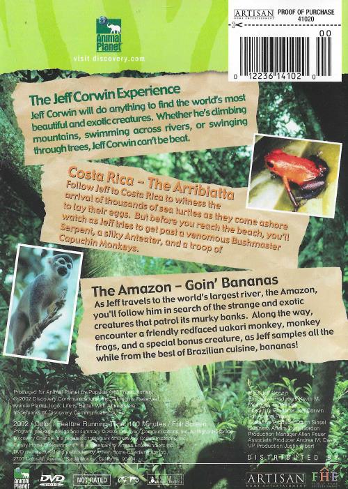 The Jeff Corwin Experience Jeff Corwin will do anything to find the world's most beautiful and exofic creatures. Whether he's climbing mountains, swimming across rivers, or swinging through The Amazon - Goin' Bananas As Jeff travels to the world's largest river, the Amazon, you'll follow him in search of the strange the Along l A and exotic creatures that patrol its murky banks. way, encounter a friendly redfaced uakari monkey, monkey frogs, and a special bonus creature, as Jeff samles all the while from the best of Brazilian cuisine, bananas!