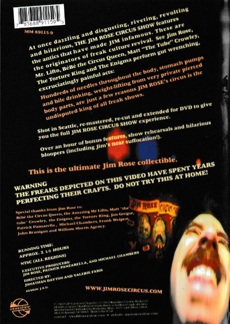 The Jim Rose Circus - Ugly & Proud DVD captures the dariling and disgusting, riveting, revolting world of Jim Rose and his infamous antics. Experience the originators of freak culture. Witness horrifying acts like weight-lifting with velrY, excruciatingly painful acts involving hundreds of needles throughout the body, and much more. This DVD is shot in Seattle, remastered, recut, and extended to deliver the full Jim Rose Circus experience. Look behind-the-scenes with show rehearsals and hilarious extras. WARNING: DO NOT TRY THIS AT HOME! Featuring a variety of characters. This is the ultimate Jim Rose collectible.