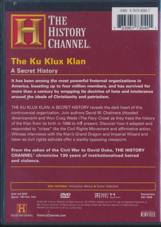 The Ku Klux Klan A Secret History DVD VIDEO DOCUMENTARY hate civil rights SEALED