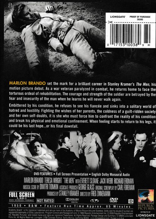 The Men DVD VIDEO MOVIE 1950 Marlon Brando Stanley Kramer war veteran combat NEW
