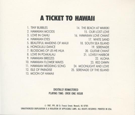 The Moana Loa Minstrels: A Ticket To Hawaii MUSIC AUDIO CD hawaiian tropical '87