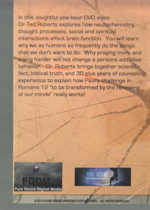 In this insightful one-hour DVD video, Dr. Ted Roberts explores how neurochemistry, thought processes, and social and spiritual interactions affect brain function. You will learn why we as humans so frequently do the things that we don't want to do and why praying more and trying harder will not change a person's addictive behavior.