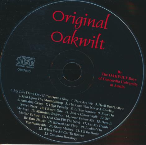 The Oakwilt Boys are a traditional country and gospel vocal group associated with Concordia University at Austin. This release collects original Oakwilt Boys songs alongside traditional favorites and two previously unrecorded tracks. Their sound emphasizes acoustic guitars, close vocal harmonies and devotional themes drawn from folk and gospel traditions. The album blends storytelling ballads, hymn arrangements and upbeat country numbers.