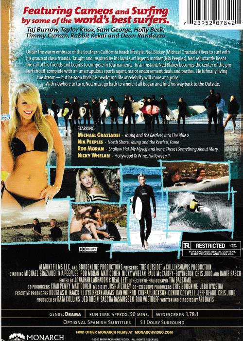 The Outside DVD VIDEO MOVIE Michael Graziadei Nia Peeples surfing Taj Burrow +