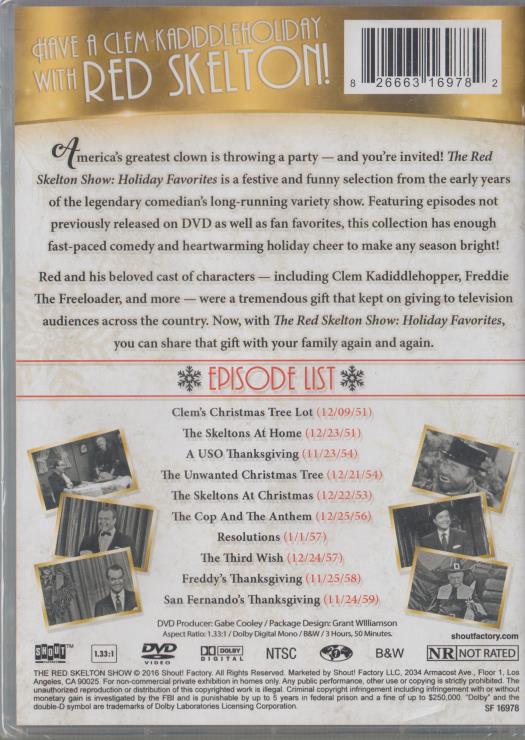 America's greatest clown is throwing a party — and you're invited! The Red Skelton Show: Holiday Favorites presents a festive and funny selection from the early years of the legendary comedian's long-running variety show. Featuring episodes not previously released on DVD as well as fan favorites, this collection offers fast-paced comedy and heartwarming holiday cheer to make any season bright.