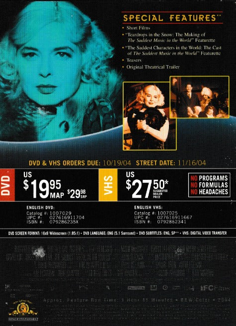 The Saddest Music In The World Screening DVD VIDEO MOVIE musical Mark McKinney