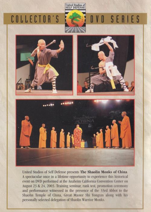 United Studios of Self Defense presents The Shaolin Monks of China. A spectacular one-of-a-kind opportunity to experience this historical event on DVD performed at the Anaheim California Convention Center on August 23 & 24, 2003.