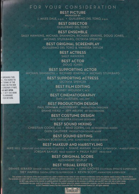 The Shape Of Water FYC DVD VIDEO MOVIE fantasy romance drama Guillermo del Toro