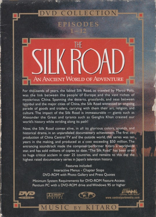 Now, the Silk Road comes alive in all its glorious colors, sounds, and historical drama in an unparalleled documentary achievement. A co-production of China Central TV and international partners, this series was produced at a cost exceeding $50 million. The evocative soundtrack by composer-performer Kitaro earned worldwide critical acclaim. The Silk Road has aired in over 25 countries and remains one of the highest-rated documentary series in Japan's television history.