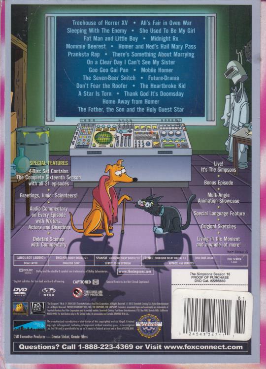 4-disc set containing the complete sixteenth season with all 21 episodes from the 2004–2005 season. Includes audio commentaries, deleted scenes, and a variety of special features for fans of the long-running animated comedy series.