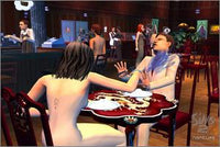 With Nightlife, Sims 2 characters can go on dates in a new downtown area, full of restaurants and nightclubs that players can edit or rebuild as they desire. The success of a date is tracked, from moment to moment, and two Sims who hit it off will soon find new social interactions available to them, to help them develop their romantic relationships even further. Many of the expansion's new objects, such as the dining booth and the bowling alley, can be used to help Sims improve their relationships with one another while they have fun and quell other needs at the same time.