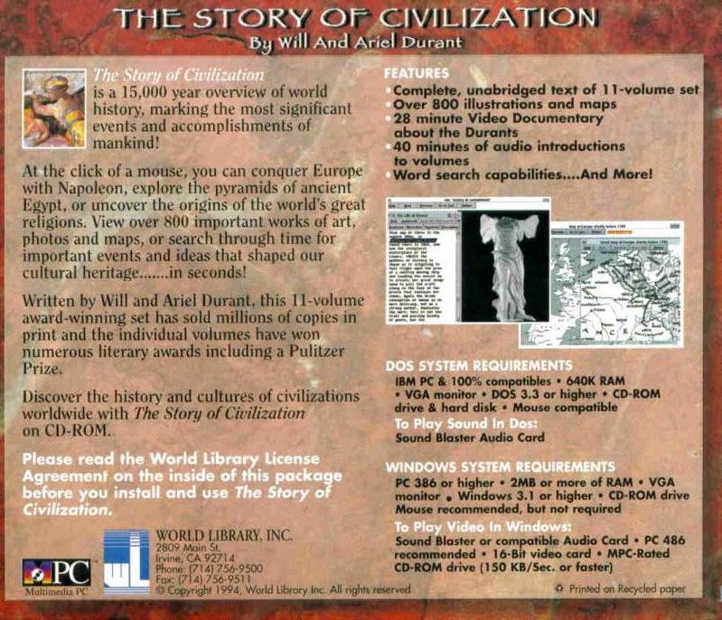 The Story Of Civilization PC CD-ROM Will & Ariel Durant entire history world