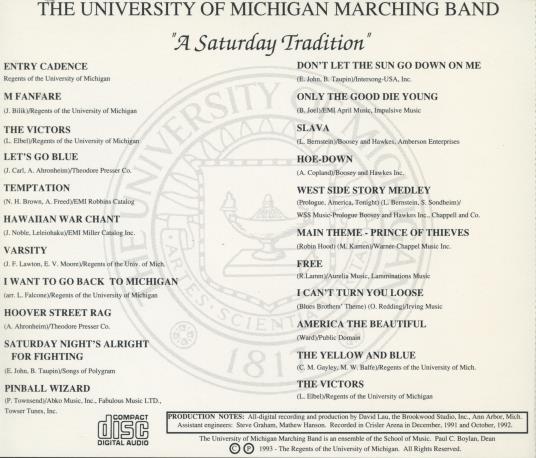 The University Of Michigan Marching Band: A Saturday Tradition MUSIC AUDIO CD UM