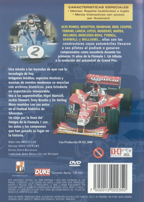 ALFA ROMEO, BENETTON, BRABHAM, BRM, COOPER, FERRARI, LANCIA, LOTUS, MASERATI, MATRA, MCLAREN, MERCEDES-BENZ, TYRRELL, VANWALL y WILLIAMS — ellos son los constructores cuyos automóviles llevaron a sus pilotos al podio o ganaron campeonatos como escudería durante los primeros 15 años de la Fórmula 1. Un tributo a la evolución del automóvil de Grand Prix.