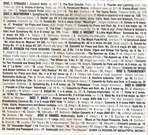 The World's Greatest Masterpieces, 8 CDs (Strauss, Beethoven, Mozart, Tchaikovsky, Chopin, Vivaldi, Bach, Handel)