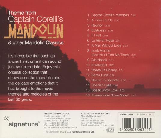 Theme From Captain Corelli's Mandolin & Other Mandolin Classics MUSIC AUDIO CD