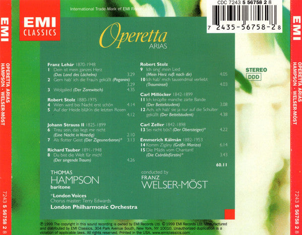 Thomas Hampson, London Philharmonic Orchestra, Franz Welser-Möst: Operetta Arias