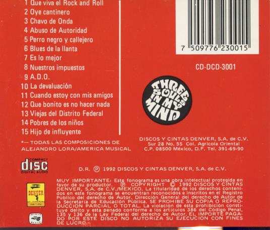 Three Souls In My Mind: 15 Grandes Exitos MUSIC AUDIO CD latin blues rock 1992