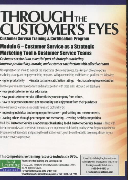 In summary, the Through The Customer's Eyes 6-DVD Set is an invaluable resource for anyone looking to transform how their organization views and delivers customer service, ensuring long-term success and satisfied customers.