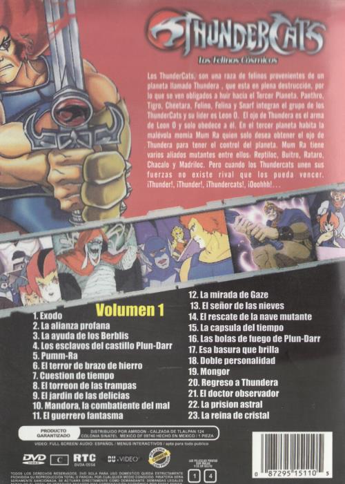 ThunderCats: Los Felinos Cosmicos Volumen 1 DVD VIDEO TV SHOW animated Spanish