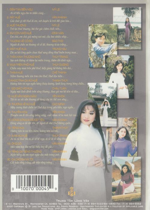 DVD karaoke tuyển chọn các nhạc phẩm trữ tình về Huế, trình bày bởi nhiều ca sĩ nổi tiếng. Ấn phẩm do Trung Tâm Làng Văn (Lang Van Productions) phát hành, mã DVD 45.