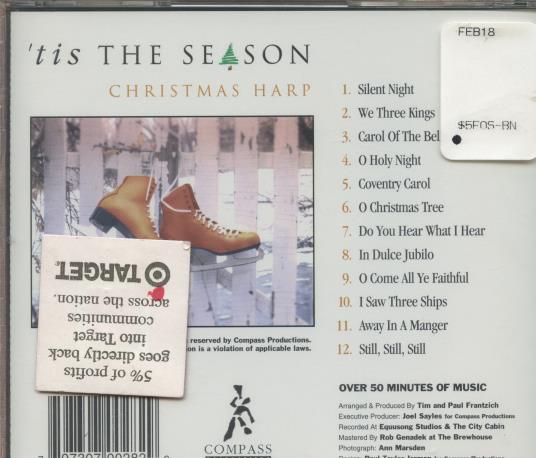 Enjoy the soothing sounds of holiday classics played on the harp by 'Tis The Season Christmas Harp. Arranged & Produced By Tim and Paul Frantzich. Executive Producer: Joel Sayles for Compass Productions. Recorded At Equusong Studios & The City Cobh. Mastered By Rob Genadek at The Brewhouse. Photograph: Ann Marsden. Design: Paul Taylor Jarman for Compass Productions